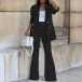 This Elegant Solid Color Suit Set is perfect for any formal occasion. It includes a double-breasted lapel blazer and wide-leg pants.