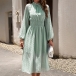 This dress is the epitome of elegance, featuring a sophisticated Swiss-dot pattern and feminine details that are sure to make a statement.