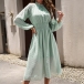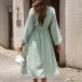 Elegant Solid Color Swiss-dot Pattern Ruffled Mock Neck Long Sleeve Cinch Waist Dress