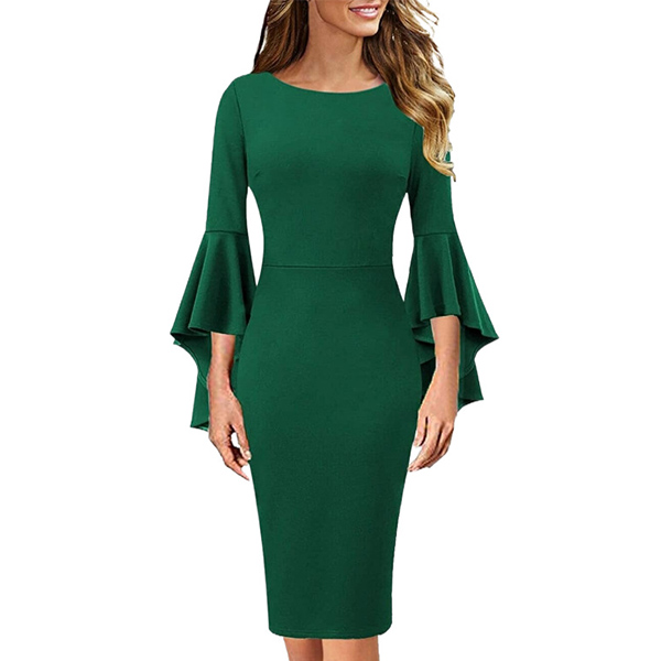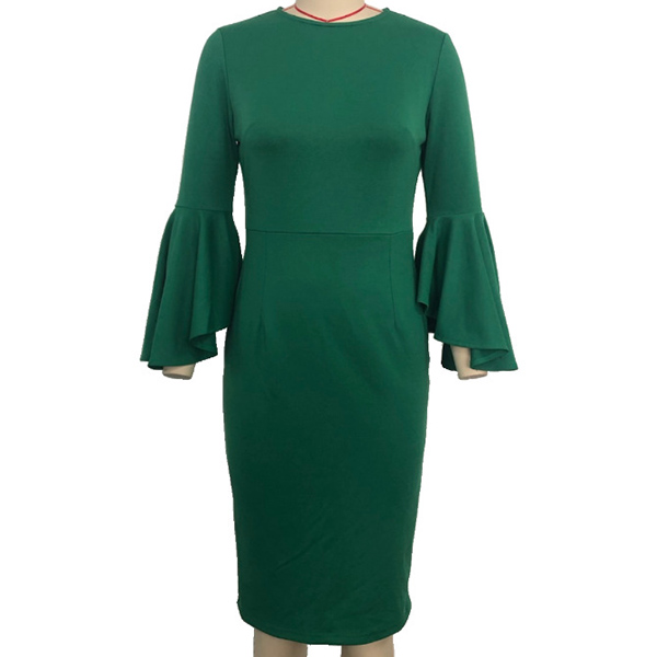 Elegant Solid Color Trumpet Sleeve Round Neck Slim Fit Dress
