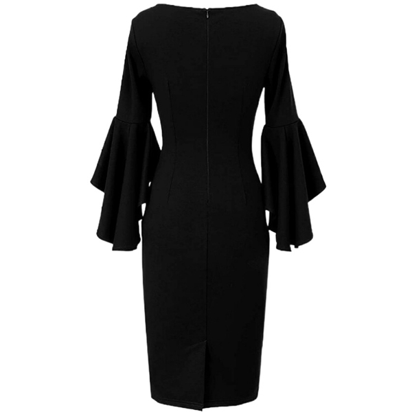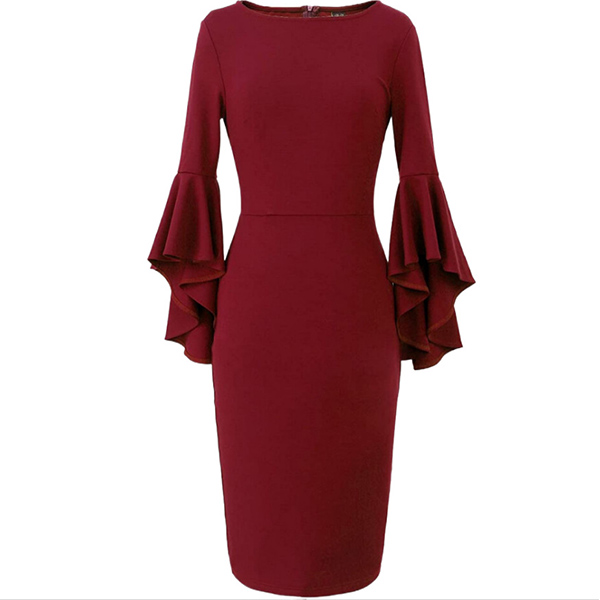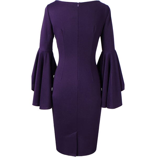 It is a good chance to portray your elegant and charming image through this delicate dress. Solid color style,finished with trumpet sleeve,round neck and a fit silhouette,this dress also can enhance your feminine appeal. This is a dress which can be fit for different occasions. So why not invite this piece to your wardrobe?