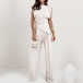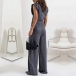 This two-piece set is perfect for a variety of occasions, from a day at the office to a special event or dinner. The irregular hemline shirt offers a modern twist on a classic silhouette, adding visual interest and a touch of uniqueness to the outfit. The straight-cut pants offer a tailored and flattering fit, creating a sleek and streamlined silhouette.Add heels and statement jewelry to elevate the outfit and showcase your individual style with confidence and grace.