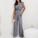 Elegant Solid Color Two-piece Set Consist of Irregular Hemline Shirt and Straight-cut Pants