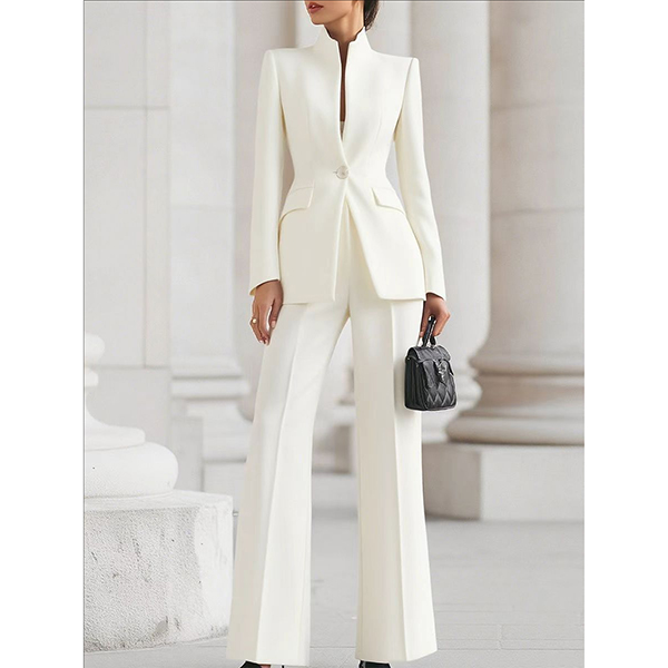 This sophisticated suit set features coordinated blazer and tailored pants in elegant solid color for professional versatility. The blazer brings structured elegance with professional proportions whilst the suit pants provide flattering fit with refined tailoring. The solid color ensures versatile coordination with seamless matching that creates polished professional impact. Perfect for business meetings, office environments, or formal professional occasions.