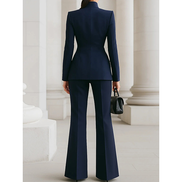 Elegant Solid Color Two-piece Suit Set Consist of Blazer and Suit pants