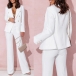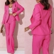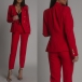 This sophisticated two-piece suit set offers a timeless, tailored look with a modern, fashion-forward twist. Featuring a double-breasted blazer and coordinating pants, this suit set is crafted from a high-quality, solid-colored woven fabric for a polished, cohesive aesthetic. Multi-colors avabile.