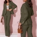Elegant Solid Color Two-piece Suit Set Consist of Double-breasted Blazer and Pants
