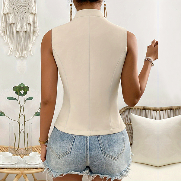 Elegant Solid Color V-neck Button Sleeveless Vest