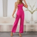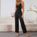 Elegant Solid Color V-neck High-rise Cross-criss Straight-cut Jumpsuit