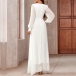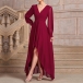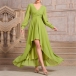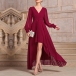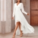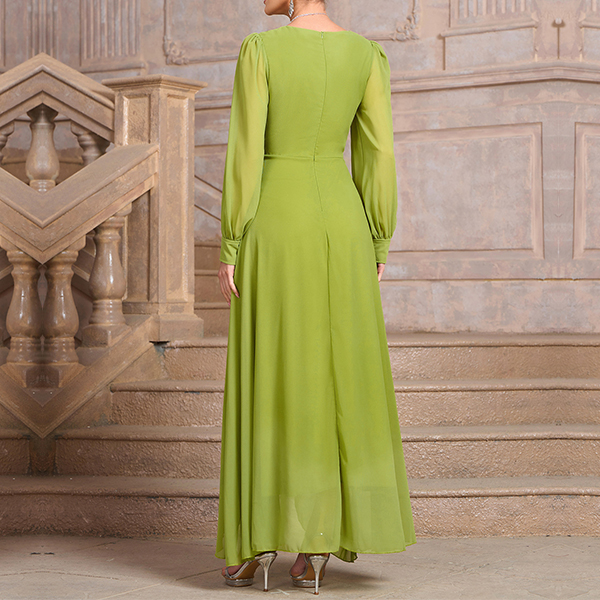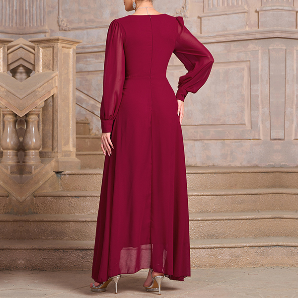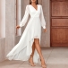 Elegant Solid Color V-neck Long Sleeve High-low Hemline Chiffon Dress