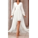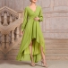This chic and versatile dress features a V-neckline that adds a touch of elegance and femininity to your look. The long sleeves provide coverage and style, while the high-low hemline creates a modern and flattering silhouette. The chiffon fabric is lightweight and flowy, perfect for a special occasion or evening event.