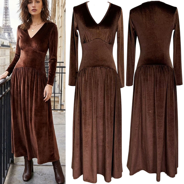 This sophisticated dress features flattering V-neck styling with comfortable high-rise waistline and elegant ruched detailing for contemporary graceful sophistication.Perfect for elegant occasions, sophisticated styling, or contemporary formal wear. Multi-colors avabile.