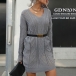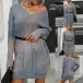 Elegant Solid Color V-neck Long Sleeve Knitted Sweater Dress
