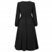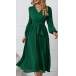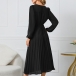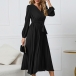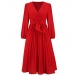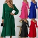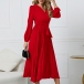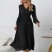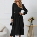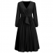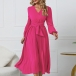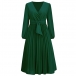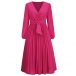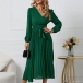 Elegant Solid Color V-neck Long Sleeve Pleated Dress with Belt