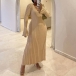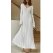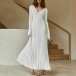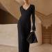 Elegant Solid Color V-neck Long Sleeve Ribbed Dress