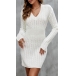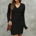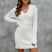 Elegant Solid Color V-neck Long Sleeve Ribbed Knitted Sweater Dress