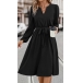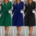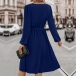 Elegant Solid Color V-neck Long Sleeve Self-tie Mini Dress