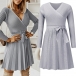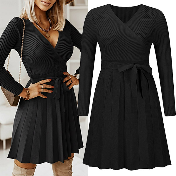 Habillez-vous pour impressionner avec cette élégante robe en maille. Le col en V est à la fois flatteur et élégant, tandis que la jupe plissée à nouer soi-même ajoute une touche de féminité. Les manches longues sont parfaites pour les journées ou les soirées plus fraîches, tandis que la couleur unie garantit que cette robe sera assortie à tous les accessoires que vous choisirez.