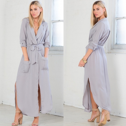 making you look so elegant and generous. V-neck,long sleeve and slit hemline design,sexy and