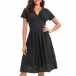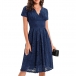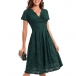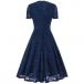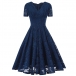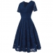 Elegant Solid Color V-neck Short Sleeve Lace Dress
