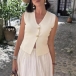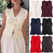 This chic and sophisticated vest features a timeless solid color design that exudes elegance and versatility. The V-neckline and sleeveless style offer a classic and flattering silhouette, while the asymmetric design adds a modern and edgy touch. Pair it with tailored trousers and a blouse for a polished and professional look~