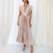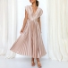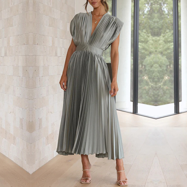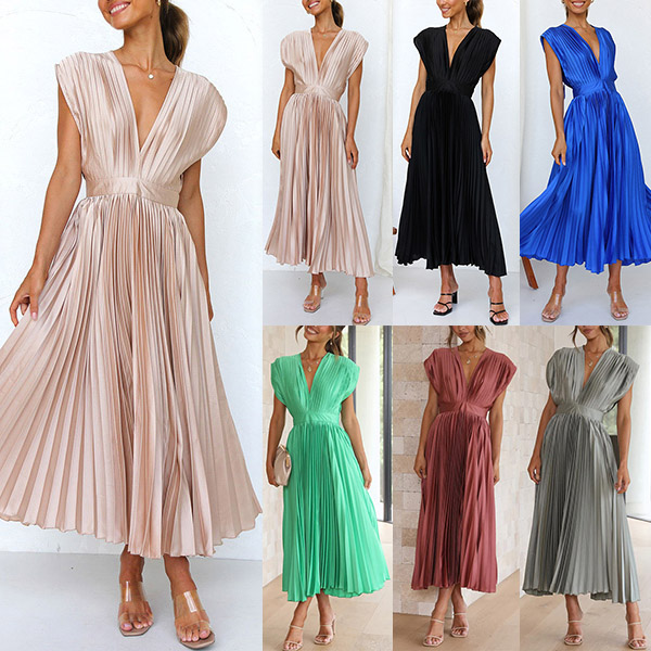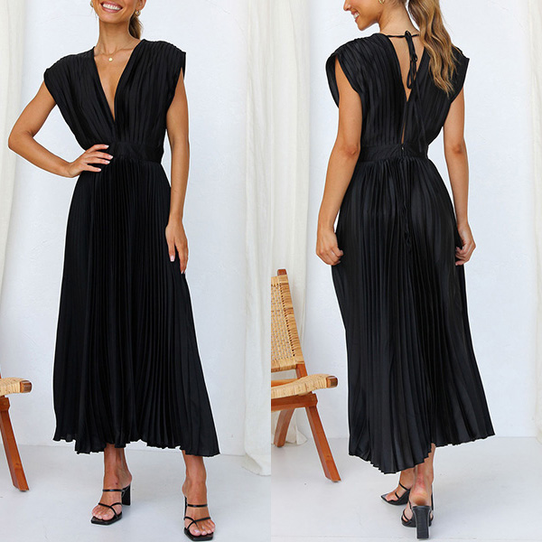 This dress featuring a sexy V-neckline, backless design adds a touch of sexiness to the garment, while the pleated detailing adds a touch of elegance and sophistication. The dress is typically made from high-quality materials, ensuring that it is comfortable and durable. Wanna have one?