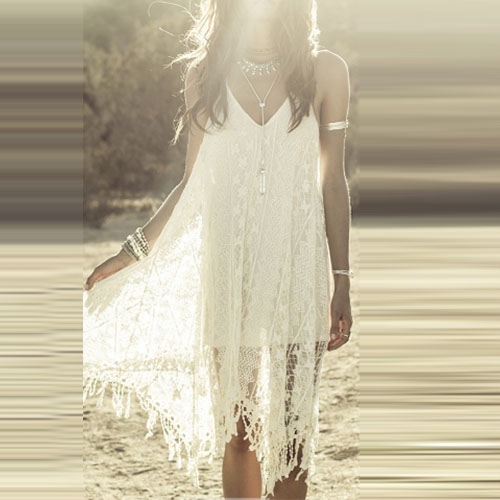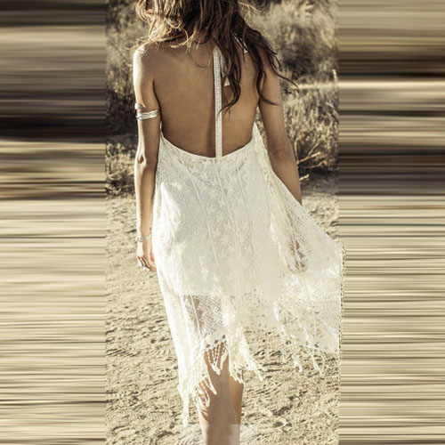 Be a beautiful and elegant girl with this dress. Features v-neck, sleeveless, backless and lace