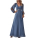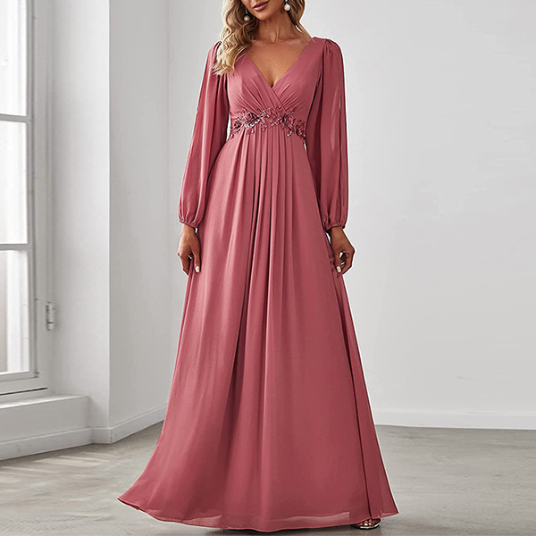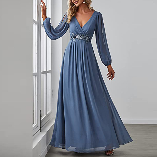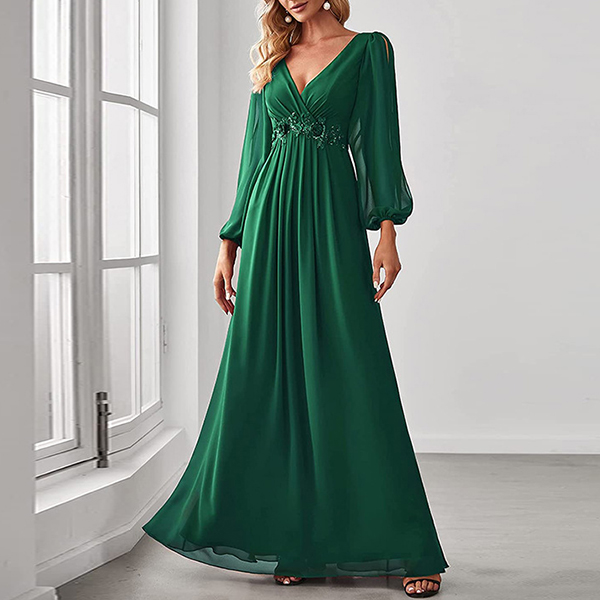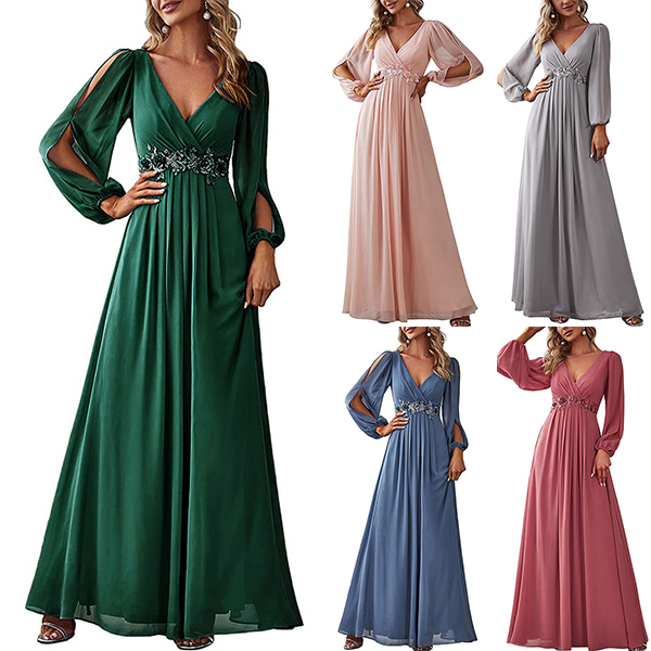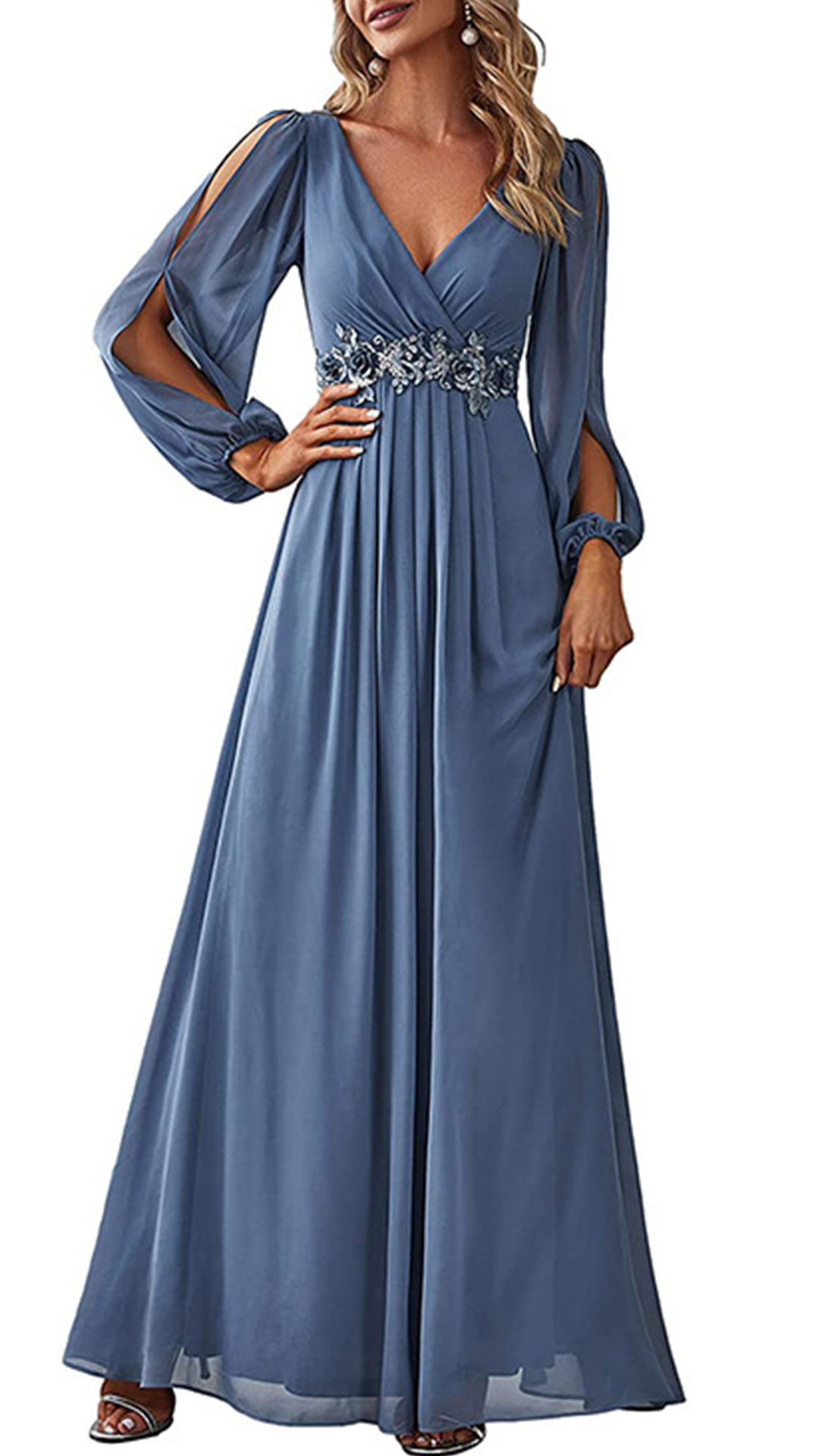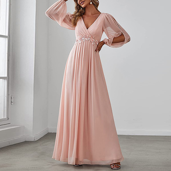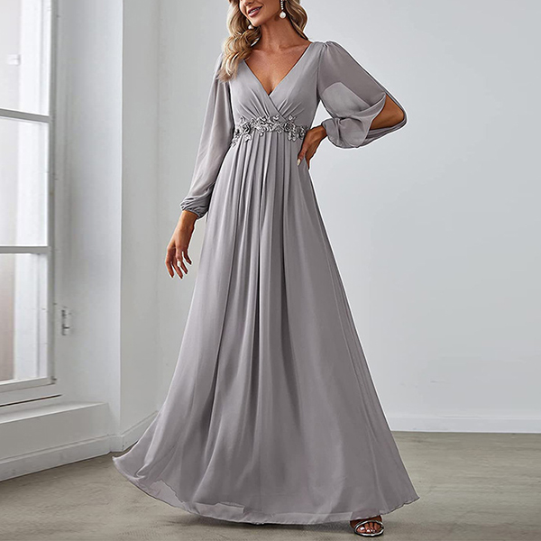 This stunning dress is the epitome of elegance and sophistication. The high-rise waistline with floral decoration accentuates your figure and creates a flattering silhouette. The maxi length adds a touch of glamour, making it perfect for special occasions and parties. And the slit details along the long sleeve add some chic element to this dress! Wanna have a try?
