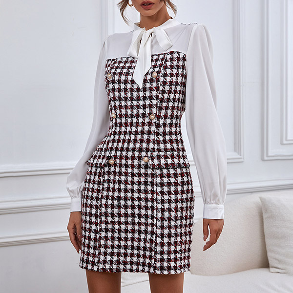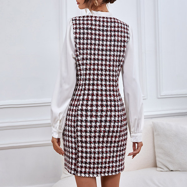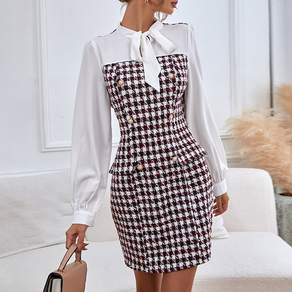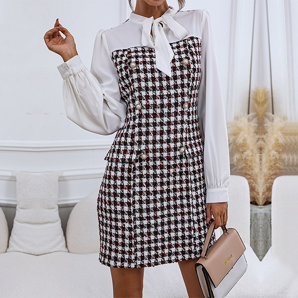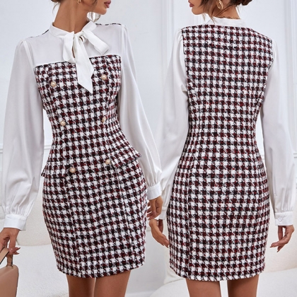 Elegant Spliced Long Sleeve Double-breasted Dress