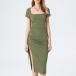 This elegant dress features a square neckline, cap sleeves, side drawstring detailing, and a chic slit for an elegant and flattering look. Wanna have one?