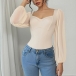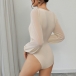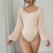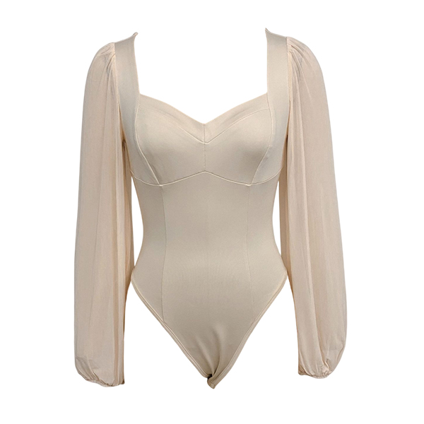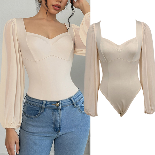 Elegant Sweetheart Neckline Gauze Spliced Long Sleeve Bodysuit