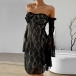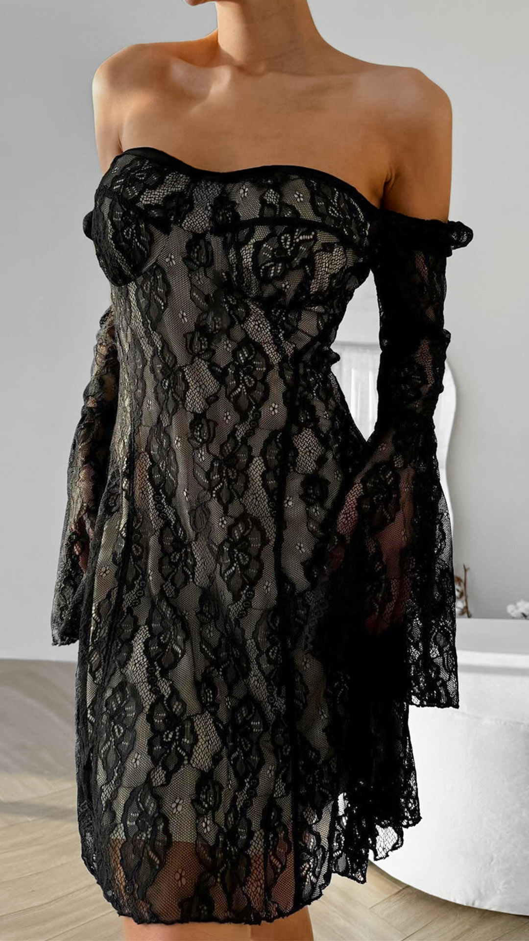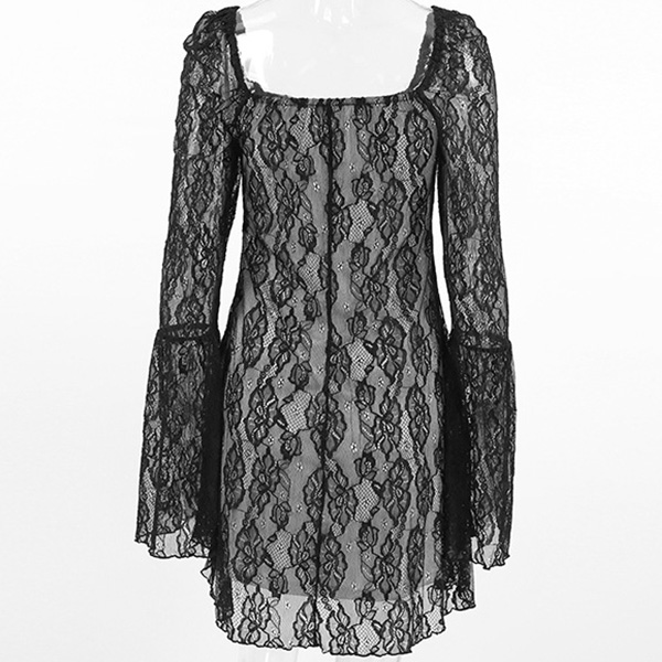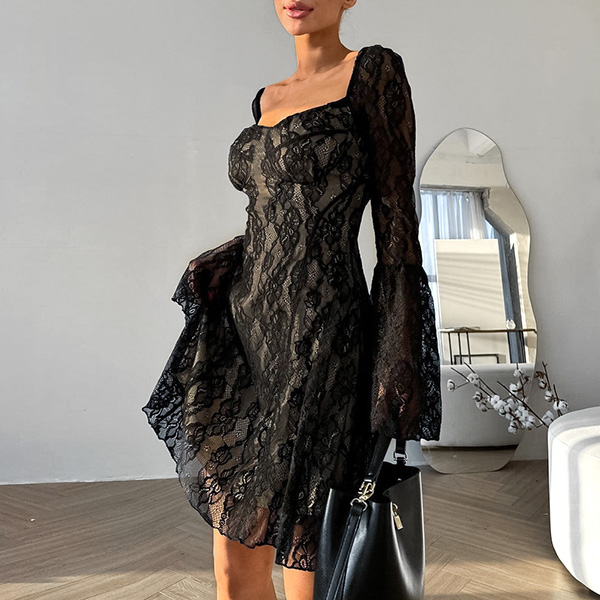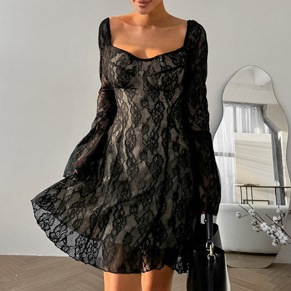 Make a sophisticated statement with this elegant lace dress. The square neckline adds a modern and stylish touch, while the long sleeves provide coverage and warmth. The delicate lace fabric gives the dress a romantic and feminine feel, perfect for special occasions or evening events. Hope you like it.