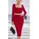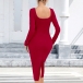 This is a sophisticated and stylish dress that combines a square neckline, long sleeves, a bodycon fit, and a back slit for an elegant and glamorous look.