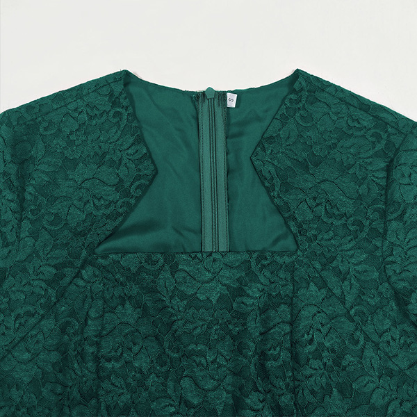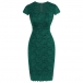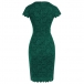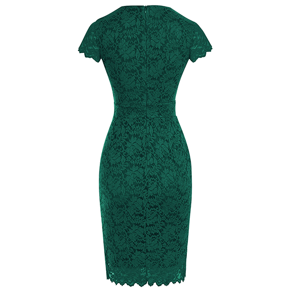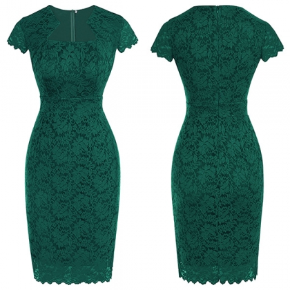 Elegant Square Neck Short Sleeve Jacquard Green Lace Bodycon Dress