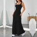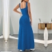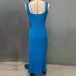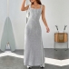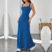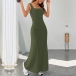 Exude timeless elegance with this Ribbed Maxi Dress. Crafted with a sophisticated square neckline and a striking backless design, this dress effortlessly combines classic and modern elements for a chic, head-turning look.