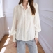 Elegant Stand Collar Lantern sleeve Lace Trim Blouse