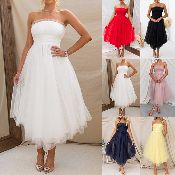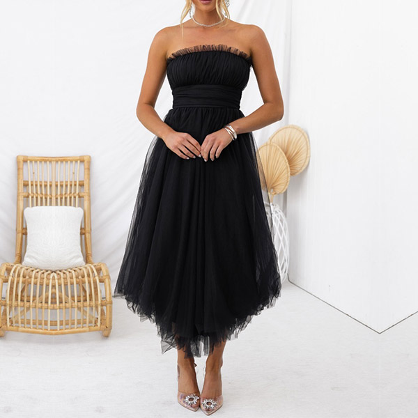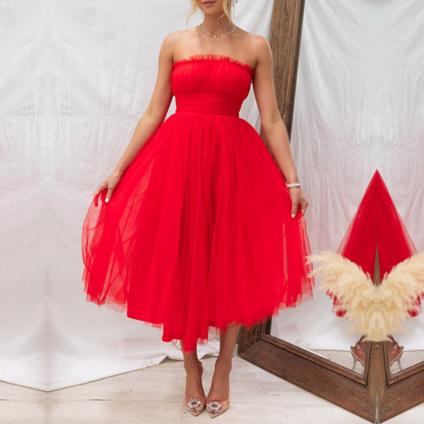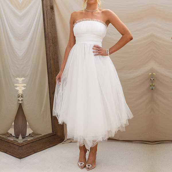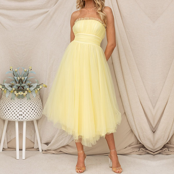 Elegant Strapless Cinch Waist Gauze Party Dress