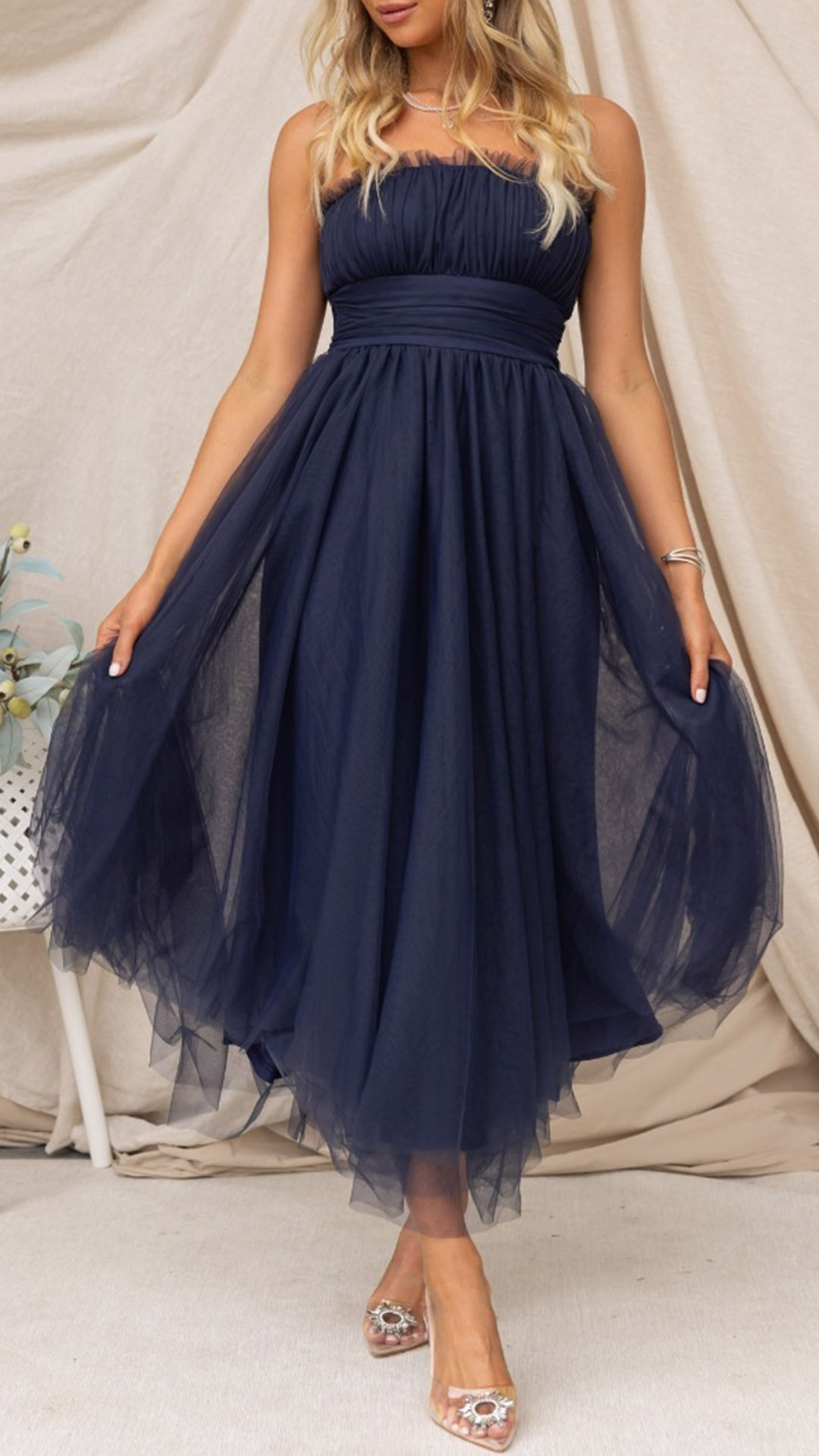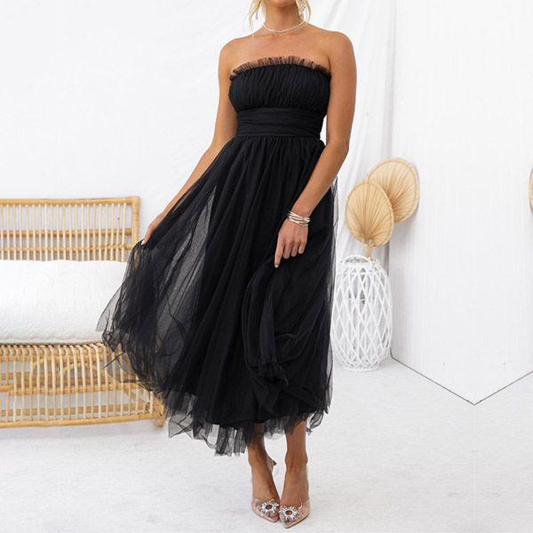 This dress epitomizes elegance and sophistication. The strapless neckline showcases your shoulders and adds a touch of allure. The cinch waist detail creates a feminine and flattering silhouette, accentuating your curves in all the right places. Crafted from gauze fabric, this dress offers a lightweight and flowing feel, perfect for parties and special occasions. Pair it with your favorite heels and statement accessories for a glamorous and stylish ensemble.