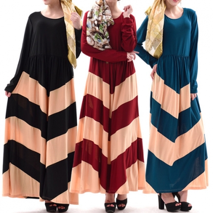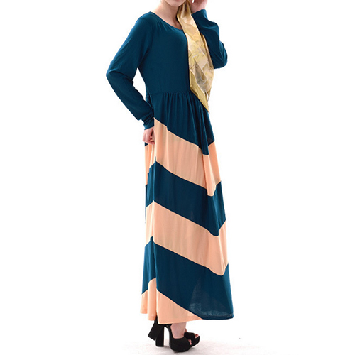 featuring round neck, long sleeve and stripes design, a loose silhouette, this dress is very comfortable