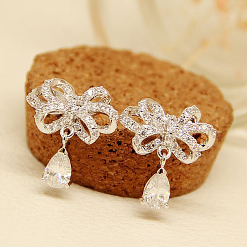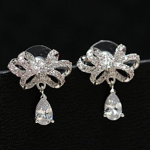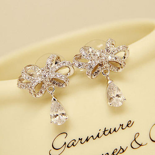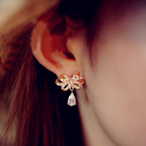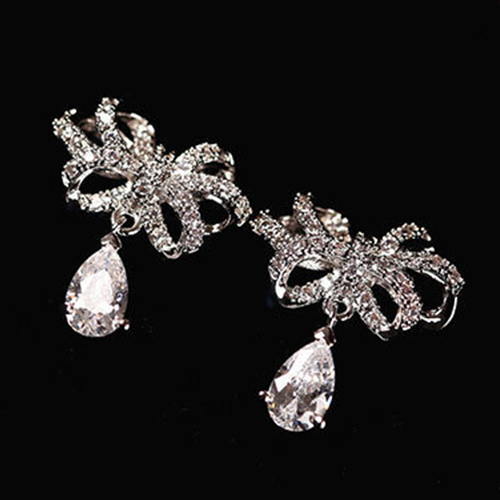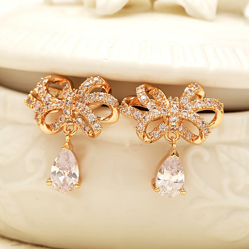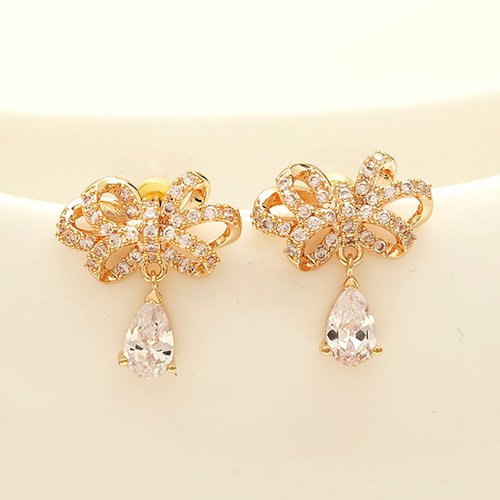 This pair of stud earrings is styled with bowkont shape and water drop-shaped, which makes it
