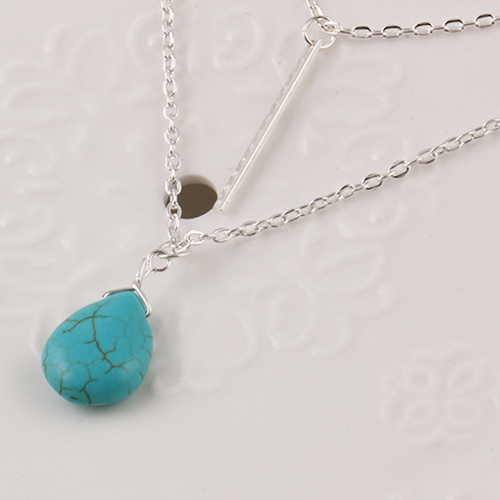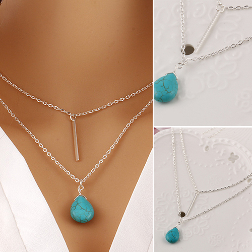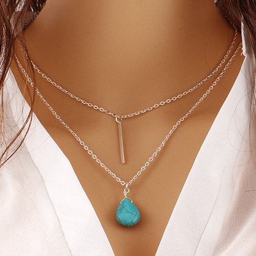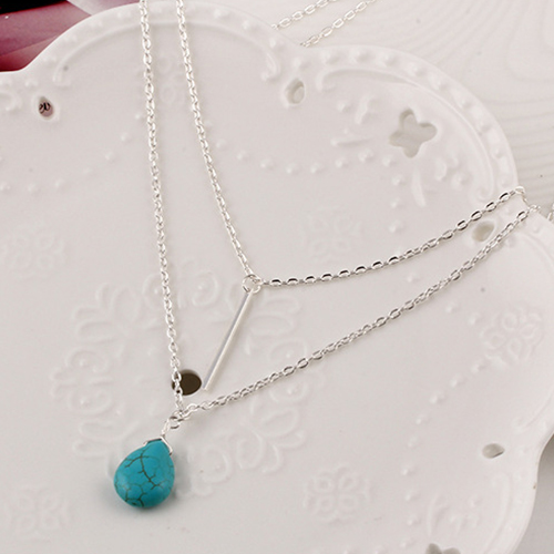 Elegant Style Double-Layer Tassel Turquoise Pendant Necklace
