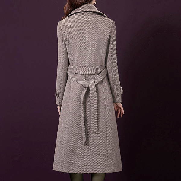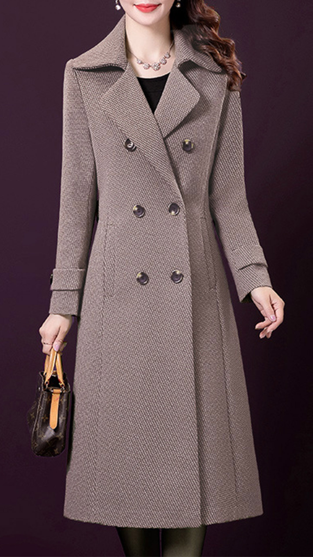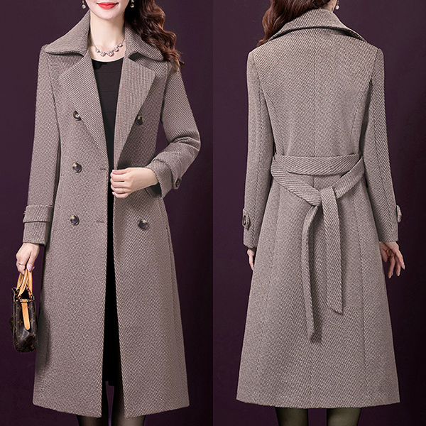 Even in the cold days,you can make your figure look slim with the help of this houndstooth woolen coat. The clean,fit silhouette and waist strap design will help showcase your figure,while the double-breasted and waist strap design will enrich the design style. You can look elegant,noble,confident and charming in this woolen coat!