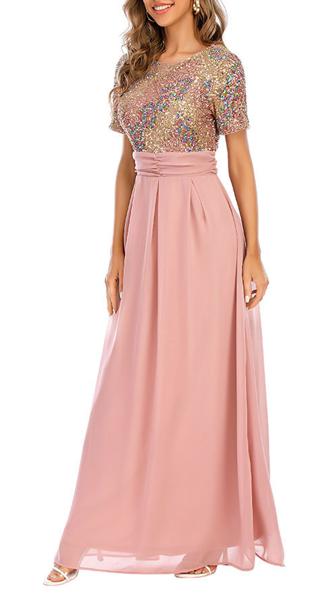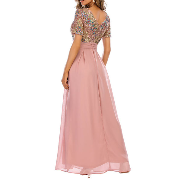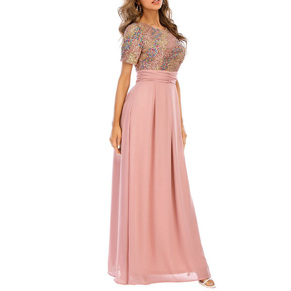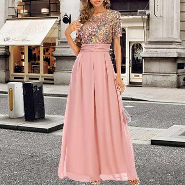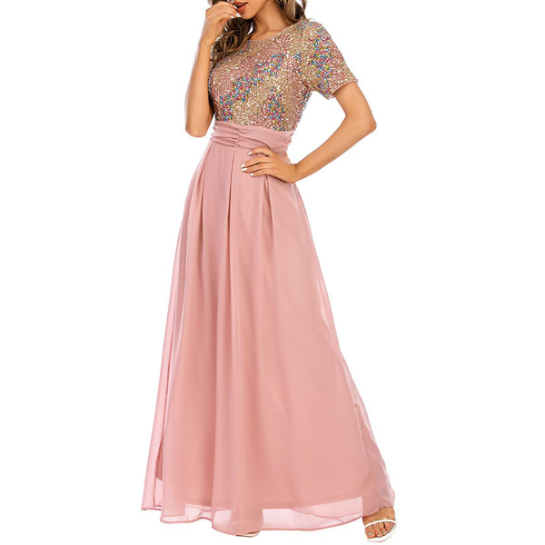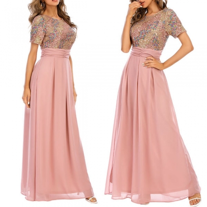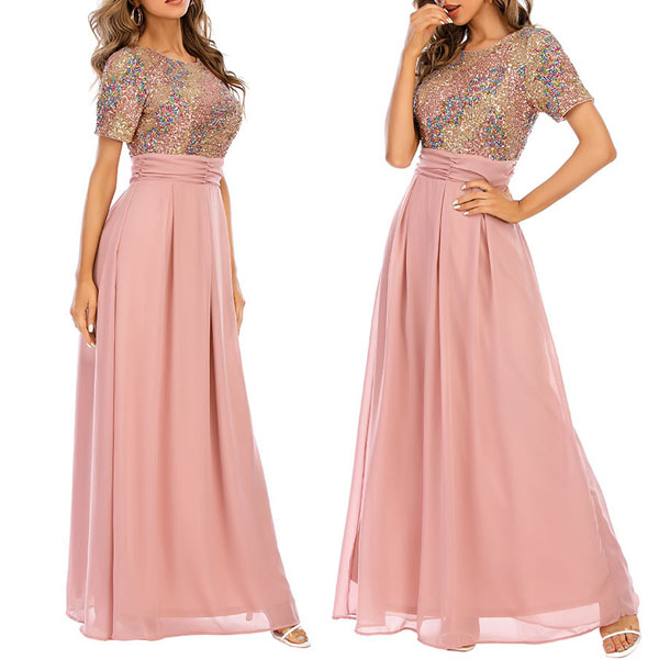 You look so elegant and charming in this dress! The sequin details make this piece look so stunning and eye-catching. Finished with short sleeve,round neck,high waist and a maxi length,this dress is a good weapon to help you draw more attention for the parties and gatherings.