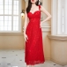 Make a glamorous entrance in this elegant red lace dress. It features a sweetheart neckline, self-tie shoulder straps and a backless design. This dress is perfect for formal events such as weddings, parties, or prom, where you want to look and feel your best.