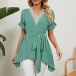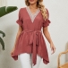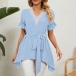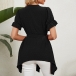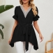 Elegant Swiss-dot Lace Spliced Short Sleeve Irregular Hemline Self-tie Shirt