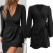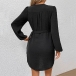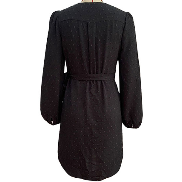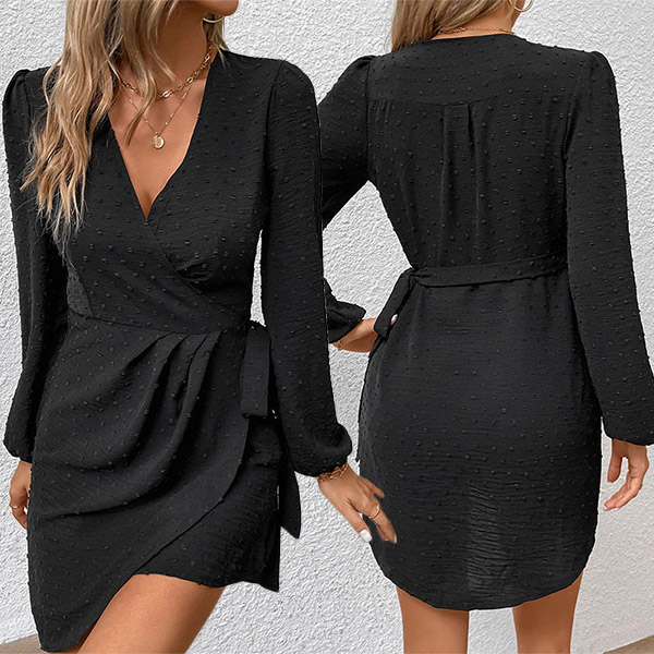 Elegant Swiss-dot V-neck Long Sleeve Wrap Dress