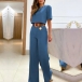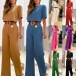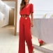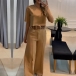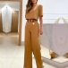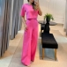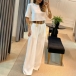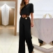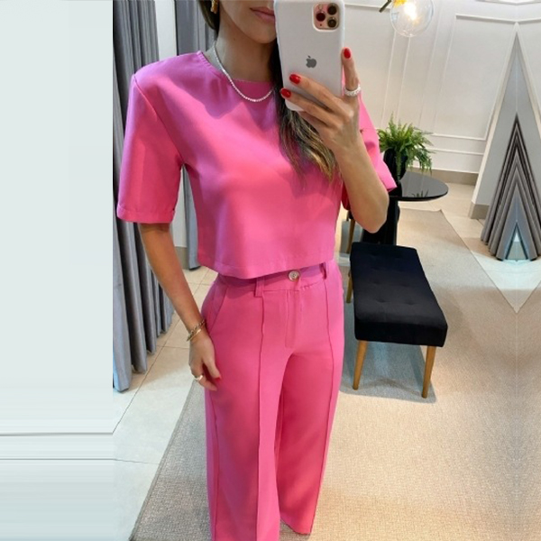 This is a sophisticated and chic ensemble that exudes modern elegance and timeless charm. The crop shirt offers a trendy and flattering silhouette, perfect for showcasing your midriff and adding a touch of flair to your outfit. The straight-cut pants provide a sleek and polished feel that is both comfortable and versatile, making them a wardrobe staple for any occasion. Wanna have one?