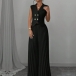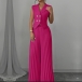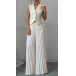 This is a chic and versatile ensemble that exudes timeless elegance and modern flair. The double-breasted vest adds a touch of classic charm, while the pleated pants provide a tailored and polished look that is perfect for creating a sophisticated outfit. Perfect for a formal event, a business meeting, or a special occasion, this two-piece set is designed to elevate your wardrobe and make a statement.