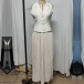 Elevate your formal and semi-formal attire with this stunning two-piece set, featuring a sleeveless vest and pleated midi skirt.