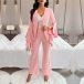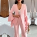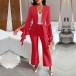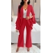 This elegant two-piece suit set consists of a blazer and straight-cut pants, creating a sophisticated and stylish ensemble. The blazer features long sleeves with ruffle cuff. The straight-cut pants offer a tailored and professional silhouette that is both flattering and versatile. This suit set is perfect for formal occasions, work, or any event where you want to make a statement with your outfit.